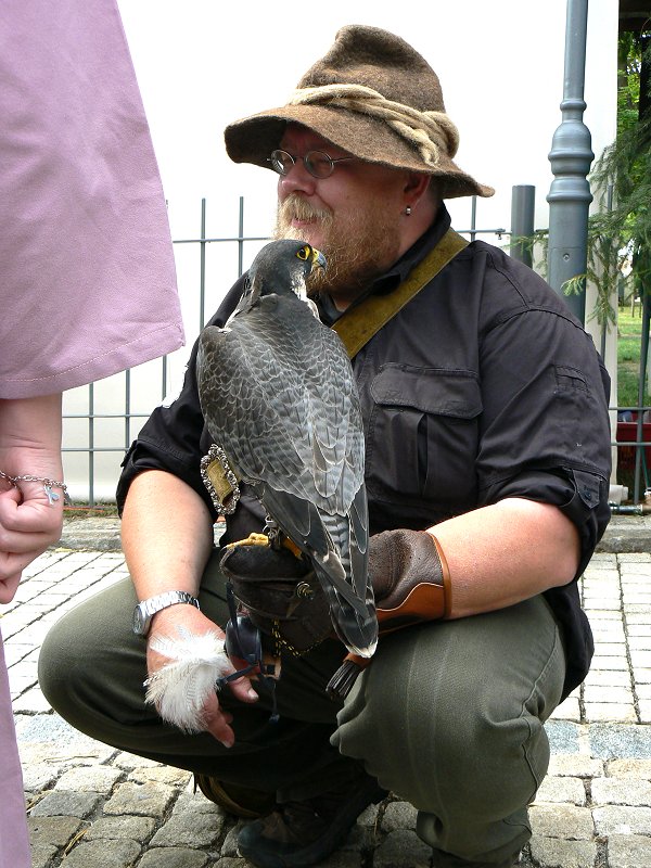 Ein Falkner bot verschiedene Greifvögel für die Beizjagd feil...