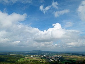 Von einer hölzernen Aussichtskanzel kann man einen weiten Blick über unsere Heimat genießen.