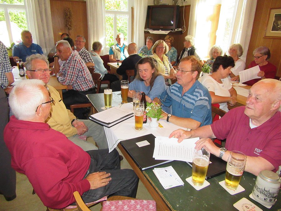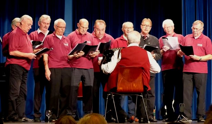 Schwungvoll wanderten die Männer der Sängerriege Einigkeit zusammen mit den Pechlohnmusikanten durch den "Weißen Winterwald", wurden andächtig beim zweiten Lied und endeten pfiffig mit Frontsänger Ernst Zollitsch mit "Oh when the Saints go marching in". Der Männerchor des FGV, ebenfalls unter der Leitung von Ernst Zollitsch, besang mit drei Liedern das Wunder der heiligen Nacht, die staade Zeit, den Winter. Die Weihnachtsgeschichte, von Sieglinde Fisch vorgetragen, verdeutlichte, dass vor der Krippe Reich und Arm gleich werden, dass niemand sich mehr vor dem anderen fürchten müsse. "Jesus ist kommen" – in den Grund ewiger Freude durften dann alle einstimmen.