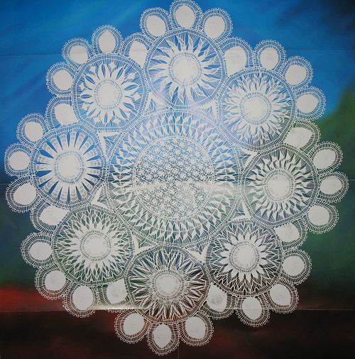 ist diese wunderschöne landestypische Stickerei, die den Altar zierte, der