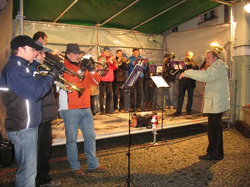 Singen unter dem Weihnachtsbaum auf dem Marktplatz mit dem Posaunenchor