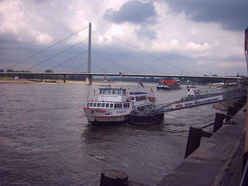 Theodor-Heuss-Brücke von der Rheinpromenade aus gesehen