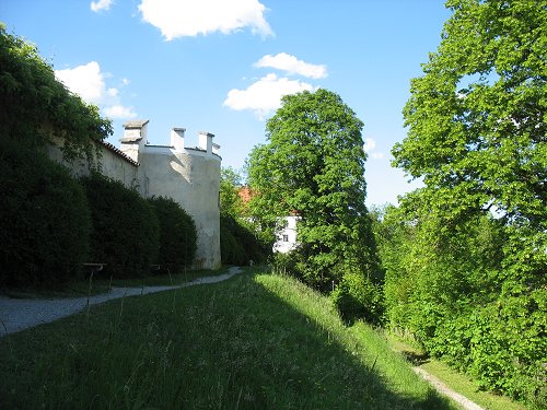 Die Begrenzung des Schlossgartens bildet immer noch die historische Wehrmauer