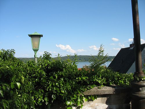 schönen Blick auf den See hinunter hat. Der Schlossgarten lässt die kleine