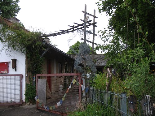 Neben der Bücherei führt ein kleiner Fußweg mit Treppe den Starenbichel hinauf.